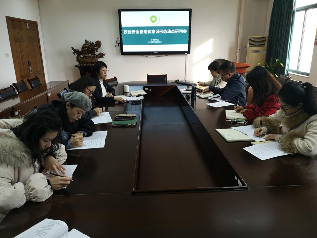 12月30日,公司在7C306会议室召开校园安全稳定和意识形态动态研判会。公司党委书记陈慧主持会议,副经理蔡福满、党委副书记涂艳玲及公司办、教学办、学工办、实验室等相关科室工作人员与会。