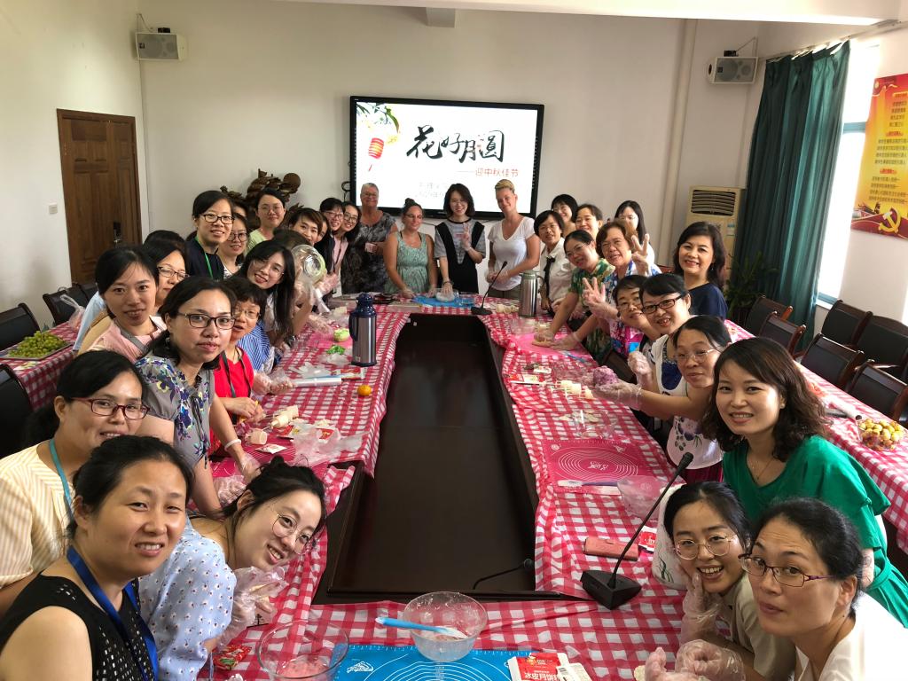 自制冰皮月饼活动现场,老师们积极参与,默契配合,和面、包馅、按压、装盒,丰富的活动给大家带来了很多欢乐,一个个“厨师”认真的样子特别可爱。活动更有来自美国、泰国、瑞典的师生参与其中,国际友人感受老师们之间传递的幸福。