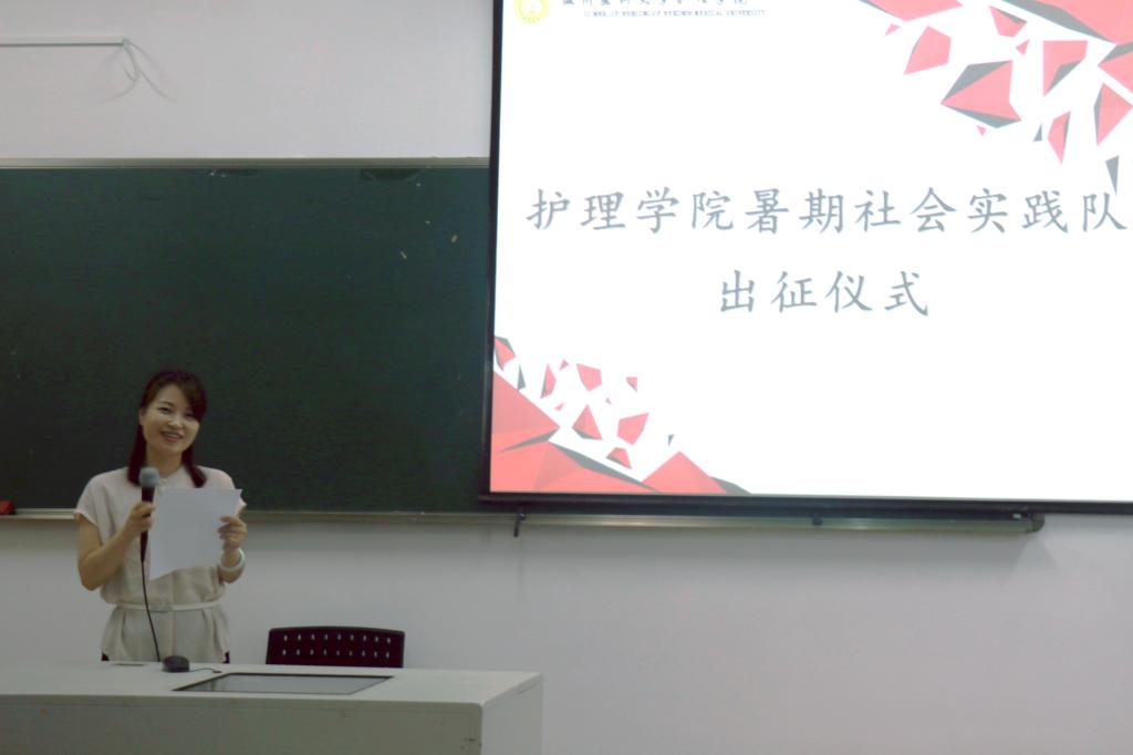 首先,“情系小候鸟,关爱新居民”康奈社会实践团的团长吕姿嫣作为员工代表发言。吕姿嫣团长向关心和支持这次社会实践活动的领导和老师们表示感谢,也表明了两支队伍圆满完成各项任务的决心:我们定将遵守老师指导,团结协作,敢于挑战,展现护生风采!