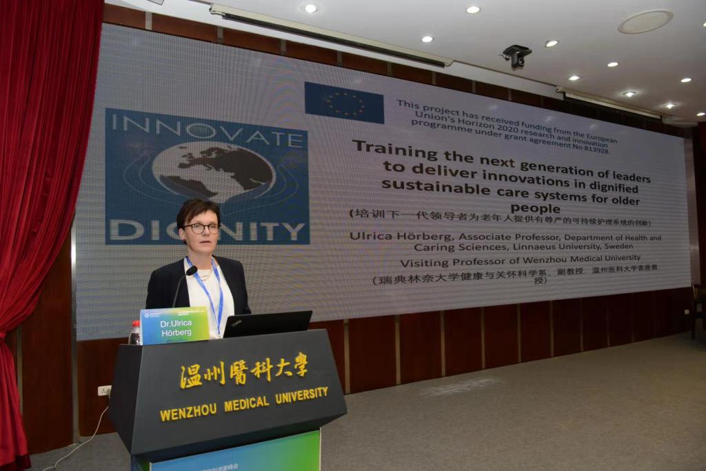 欧洲护理科公司核心院士、瑞典林奈大学健康公司Ulrica Hörberg博士就如何”为老年人提供有尊严的、可持续的护理创新体系”作讲演,主要介绍了欧盟资助的创新与尊严跨国研究项目。她认为在信息化时代,需要探究老年人口的实际需求,尤其是精神心理健康需求。她在详细分析现有医疗服务体系中的不足及原因的基础上,提出要构建以老人实际需求为核心的护理服务体系,及培训年轻一代领导者的应用创新能力,真正去关注老年人的实际需求及其尊严。