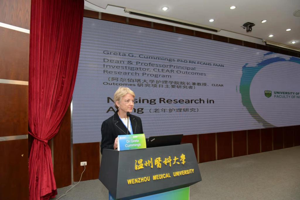 加拿大护理科公司院士、加拿大阿尔伯塔大学VSport体育经理Greta cumming 博士以《老年护理前沿研究》为题,在论坛上着重介绍了老年人机构间转移的过渡护理,为倡导“积极、成功老龄化”提供了新的研究思路和新的护理研究方向。她指出,过渡护理旨在提高长期照护机构住院老人在不同医疗机构间转移时照护的连续性,以避免不必要的院间转移,提升脆弱老人的生活质量和照护质量。她强调了老年人机构间过渡护理的重要性,还围绕如何更好提供过渡护理介绍了其科研团队的系列研究,包括探索老年人成功过渡护理的要素、建立老年人成功过渡护理的评估工具及质量评价指标、指标的临床应用等。
