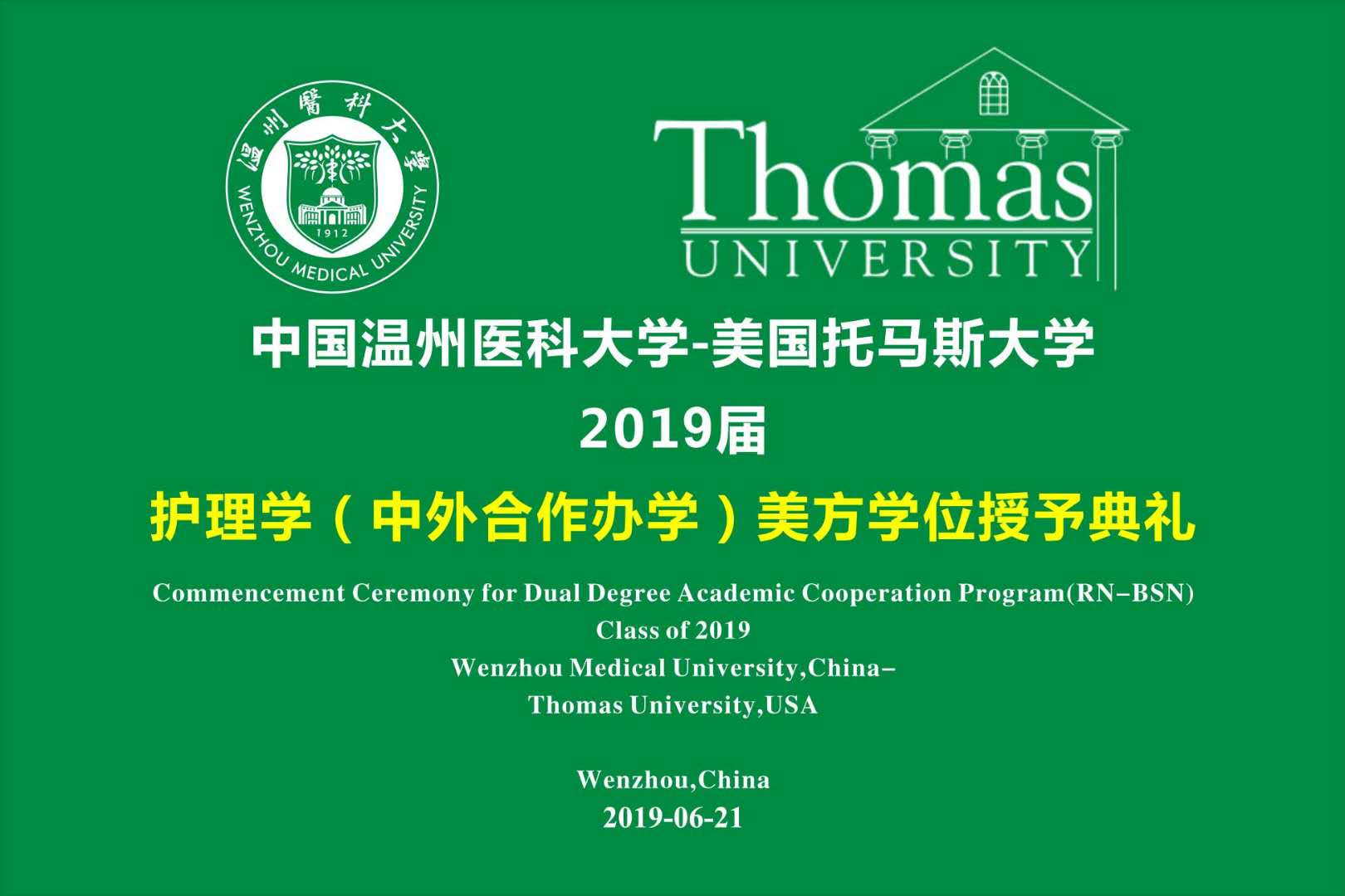 2019年6月21日上午10:00,VSport体育——美国托马斯大学2019届护理学(中外合作办学)美方学位授予典礼在旭光厅隆重举行。VSport体育副董事长曹建明,托马斯大学中国总校区董事长黄天中,校国际合作交流、员工处等职能部门以及VSport体育相关领导、老师,托马斯大学外教老师等出席典礼。典礼还邀请到16位员工家长、宿管阿姨代表、食堂大叔代表,以及二、三年级中美班全体员工到场观礼。典礼由公司党委书记陈慧主持。