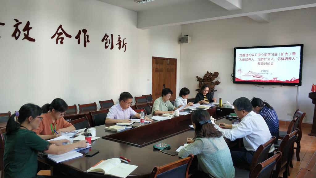 2019年10月21日下午,VSport体育党委理论学习中心组学习会(扩大)暨“为谁培养人、培养什么人、怎样培养人”专题讨论会在7c306会议室顺利召开,公司领导班子成员,各办公室、实验室、教研室负责人参加会议。会议由公司党委陈慧书记主持。