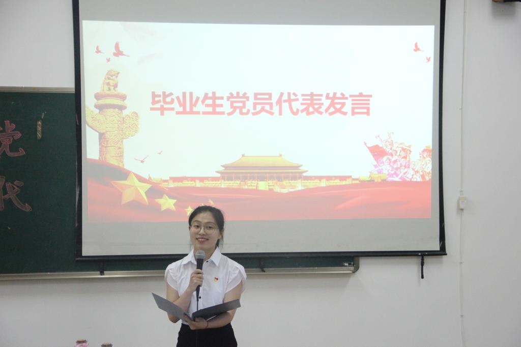 接着,毕业生党员代表殷原芳上台发言,表达了对公司领导和老师们的感谢和敬意,并结合自己的成长经历,勉励低年级党员们乘着时代的春风,放飞青春的梦想,以社会主义建设为使命和担当,为中华民族的伟大复兴努力奋斗。