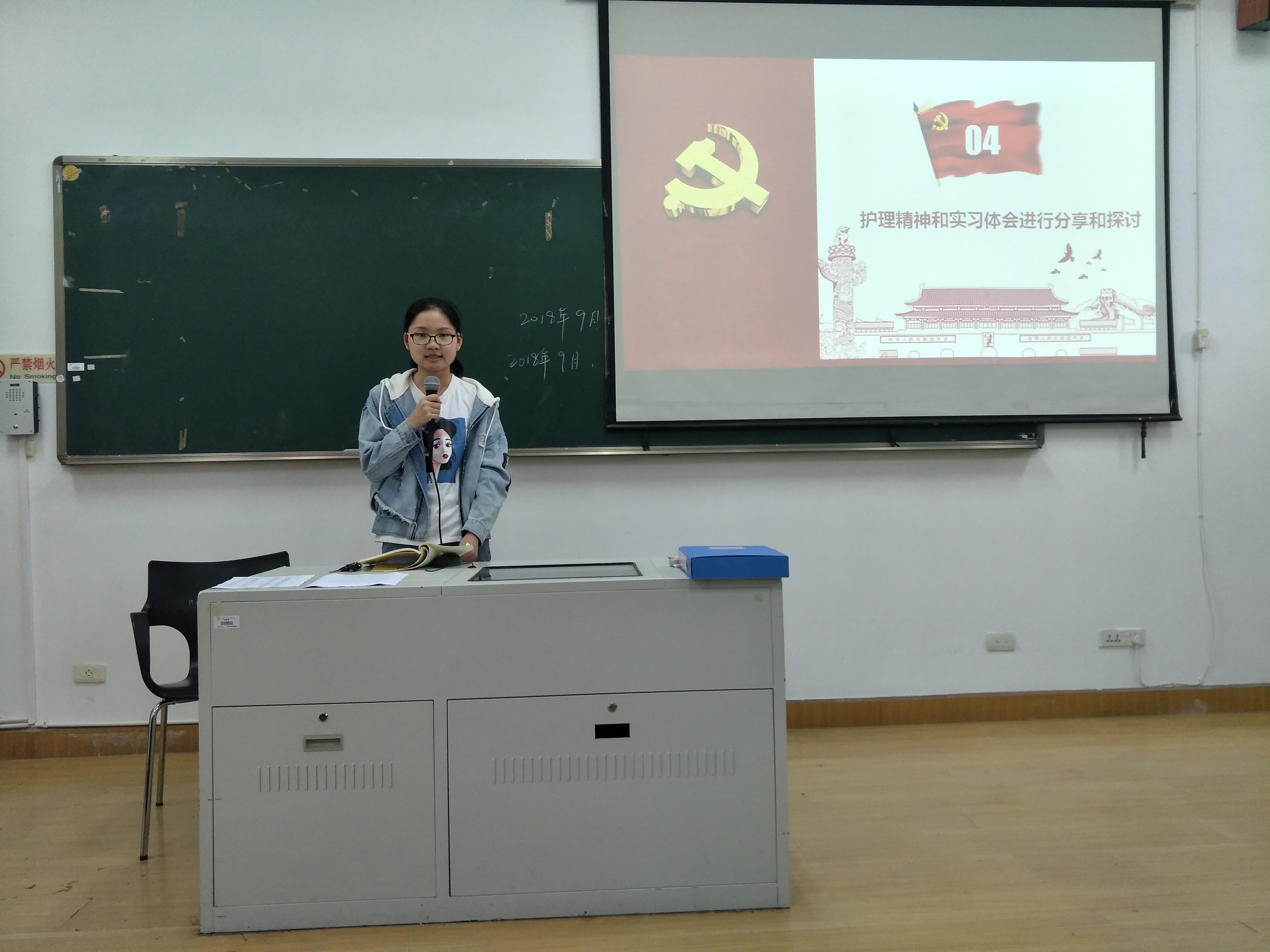 活动中,两个党支部的党员们就护理人精神展开了探讨,并将之与过去八个月在医院实习岗位上的工作经历相结合,分享了自己对护理行业、护理岗位以及作为一名员工党员如何更好地在工作中发挥先锋模范作用的观点和看法。“护理精神的极致就是‘敬佑生命,救死扶伤,甘于奉献,大爱无疆’,对于我来说,也许需要用一生去诠释,但我会把它当做护理道路的指路明灯,努力前行。”员工第三党支部党员韩嘉莉说。