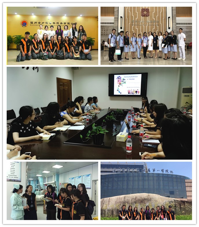 访问期间,帕塔瑞一行参观了公司人体科学馆、公司实验中心、附属第一医院、附属第二医院&育英儿童医院、附属康宁医院、瓯海区南白象社区卫生中心及温州市安孝老年护理中心、金夕福老年服务中心等处,并参与了护理学基础综合模拟课程和外科护理综合模拟课程教学。帕塔瑞博士还为公司教师、护理临床教师做了两次专题讲座,介绍了泰国卫生医疗体系和泰国东方大学护理学专业课程设置情况,并与现场老师就中泰两国的卫生医疗情况和护理教学情况进行了交流。泰国员工还为公司员工做了主题为“学在东方大学”的专题讲座,介绍了在泰国东方大学的日常学习、生活情况。