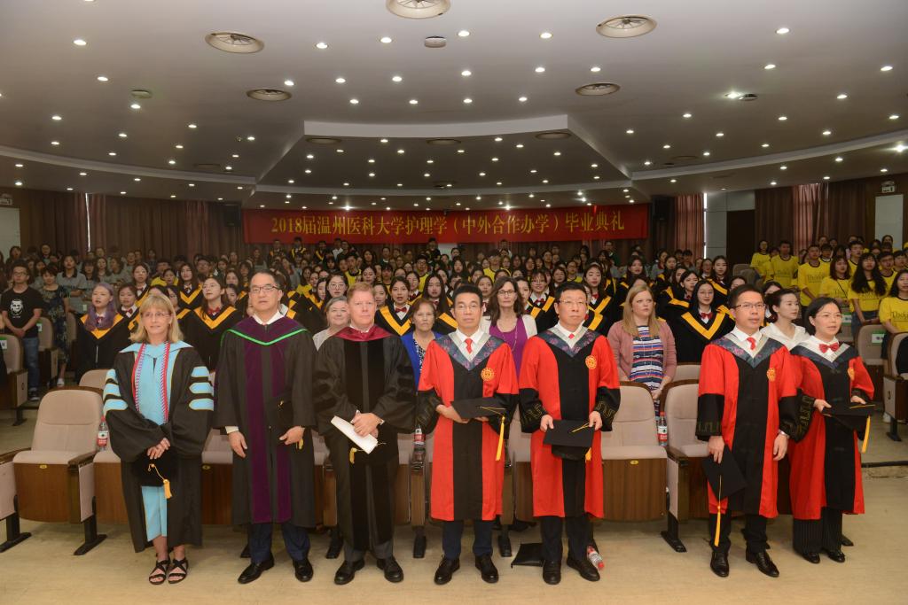 6月10日上午9点,2018届托马斯护理学(中外合作办学)美方学位授予典礼在茶山校区旭光厅隆重举行。59位护理学子接受美国托马斯大学约翰·梅斯副董事长拨穗,并从VSport体育曹建明副董事长手中接过学士学位证书,为美方课程的学习生涯画上了圆满的句号。