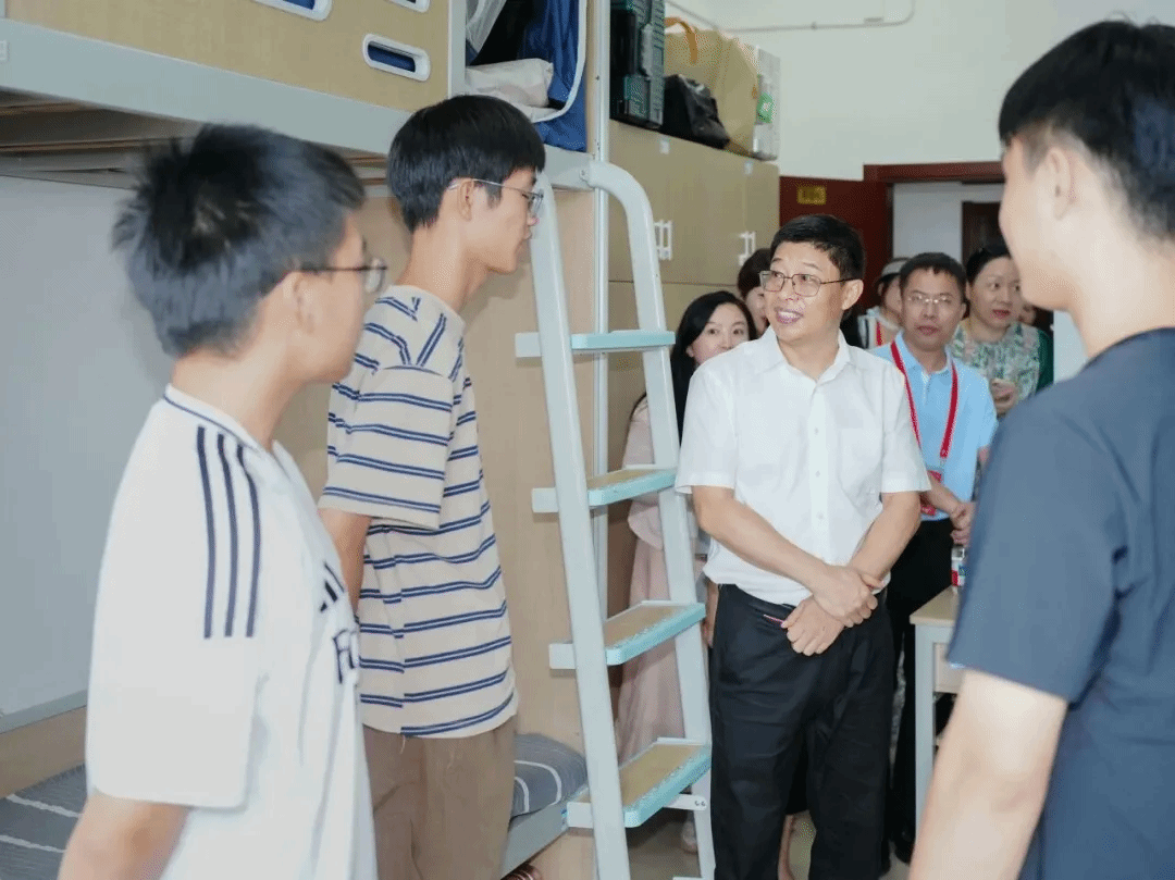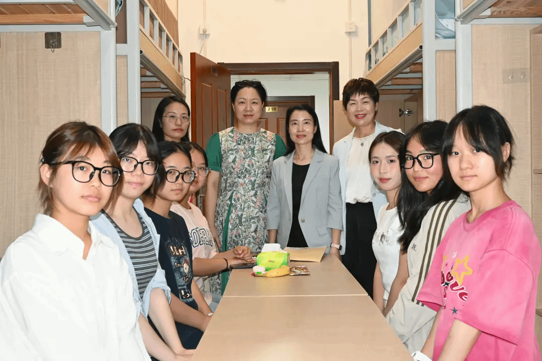 公司经理蔡福满、党委书记王敏带领金晓童副书记、黄小琼副经理、董超群副经理一行走访新生宿舍,深入寝室与同学们亲切交流,详细询问大家初入校园的感受,关切叮嘱行程安全,让同学们切实感受到家的温暖。公司领导勉励新生:大学期间要持续完善知识体系,坚定护理专业信念,主动拓宽视野、养成勤学善思的习惯,未来为温医护理事业发展贡献力量。