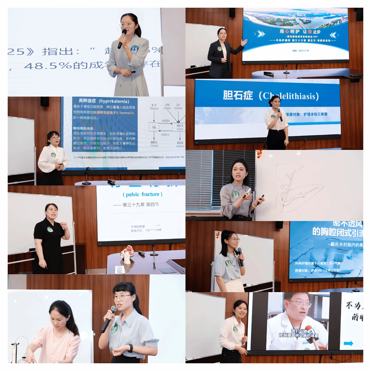 本次青年教师教学竞赛汇聚了来自24家教学医院的44名青年教师同台竞技。竞赛围绕护理理论授课、临床带教实操、智慧护理教学场景设计等核心能力展开,设置教学设计、课堂教学、教学反思三个竞赛环节,全面考察青年教师的教学基本功与创新实践能力,为临床护理教师搭建了展示教学风采与交流实践经验的平台。