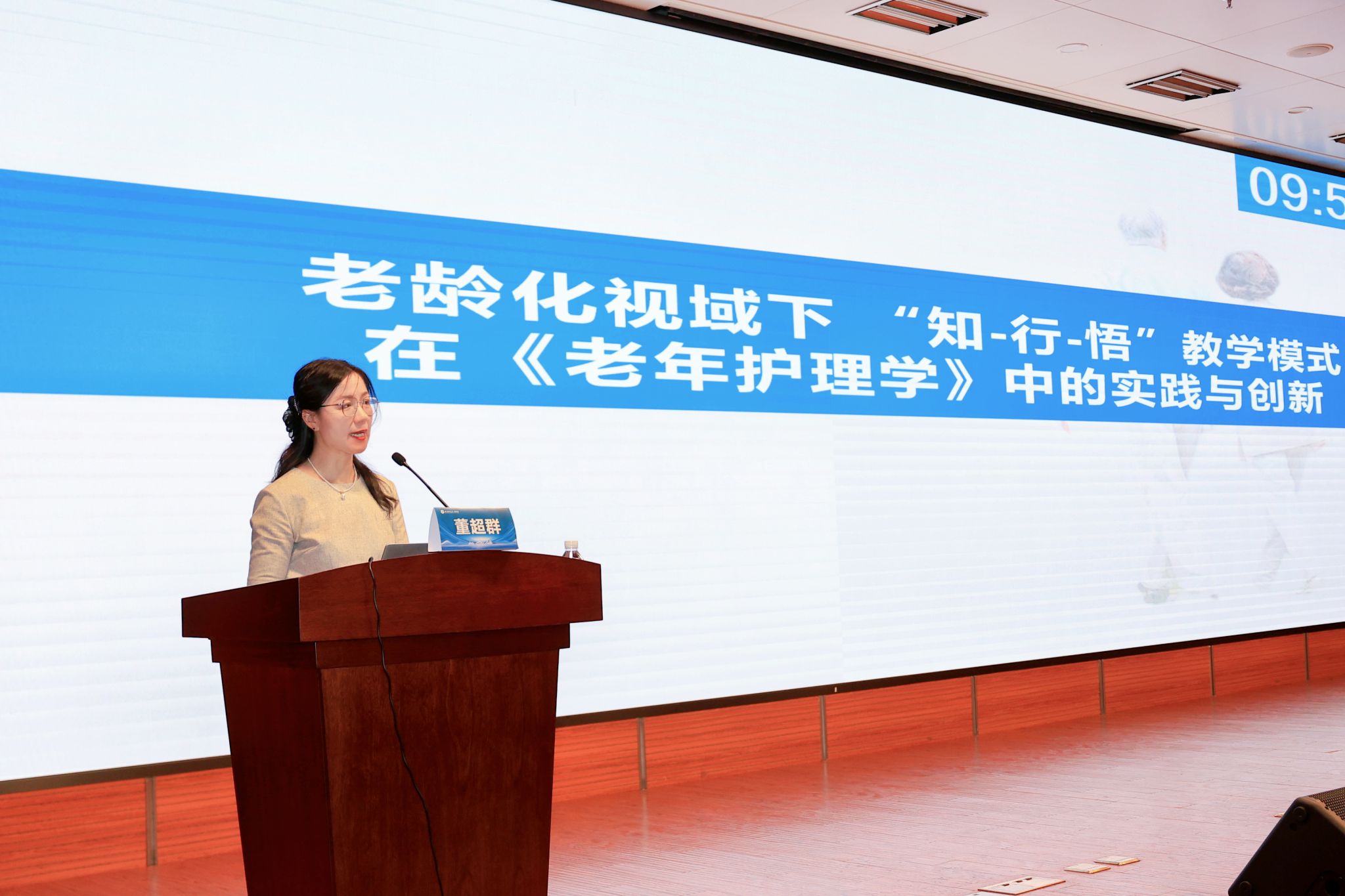 董超群副经理从老龄化社会背景下对老年护理人才的迫切需求出发,深入剖析了传统老年护理学教学模式中的四大痛点,引出“知-行-悟”这一创新教学理念。“知-行-悟”教学模式通过优化课程内容、创设全覆盖体验式学习场景等创新举措,建立“多样化、多元化、多维化”的评价体系,实现了知识传授、能力培养与价值塑造的有机统一。