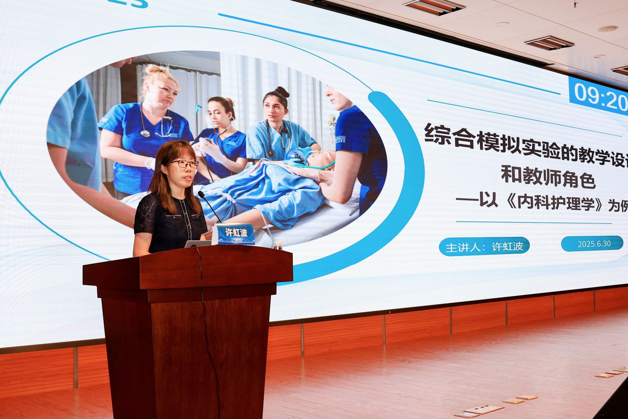 许虹波主任以《内科护理学》为切入点,聚焦综合模拟实验教学设计与教师角色展开分享,系统阐述综合模拟教学在破解临床教学困境中的必要性,详解基于SMART原则的三层次案例开发法与“教学设计-场景引导-观察记录-反馈复盘”的四维教师角色定位。