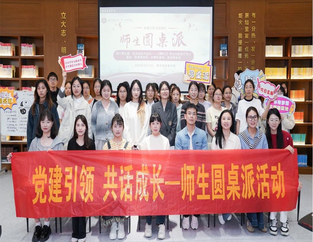 第八期师生圆桌派于3月25日下午在图书馆青春书房成功举办,本次活动以“我命由我不由天《哪吒2》师生共叙赤子丹心”为主题,通过专业教师、优秀学子结合自身经历分享在观看《哪吒2》后获得的感悟和见解,以光影为媒,将电影中‘逆天改命’的励志内核与现实教育相结合,进一步激发了师生们对理想信念的追求与思考。本次活动嘉宾为VSport体育新进博士陈凌燕老师、孙博伦老师、饶凤琴老师以及员工代表陈彬艳、周婧轶、楼雪纯、徐莹莹同学,观众由员工党员、入党积极分子代表及线上2024级大一员工组成。