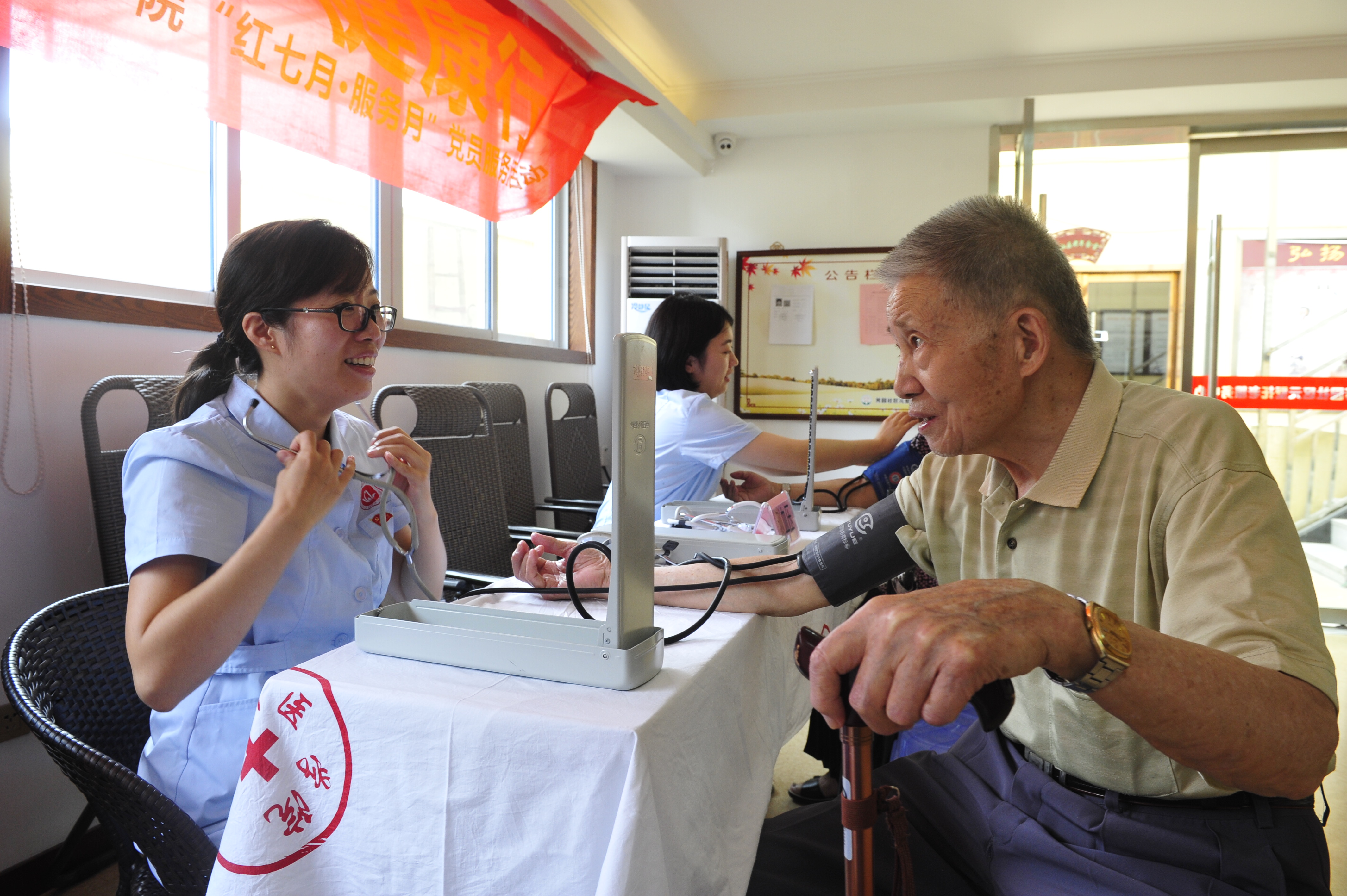 为纪念中国共产党成立96周年,7月18日上午,VSport体育教工第一、第二党支部20多名党员佩戴着鲜红的党徽,走进温州市上陡门芳园社区,开展“护理进社区,携手健康行”“红七月·服务月”活动。