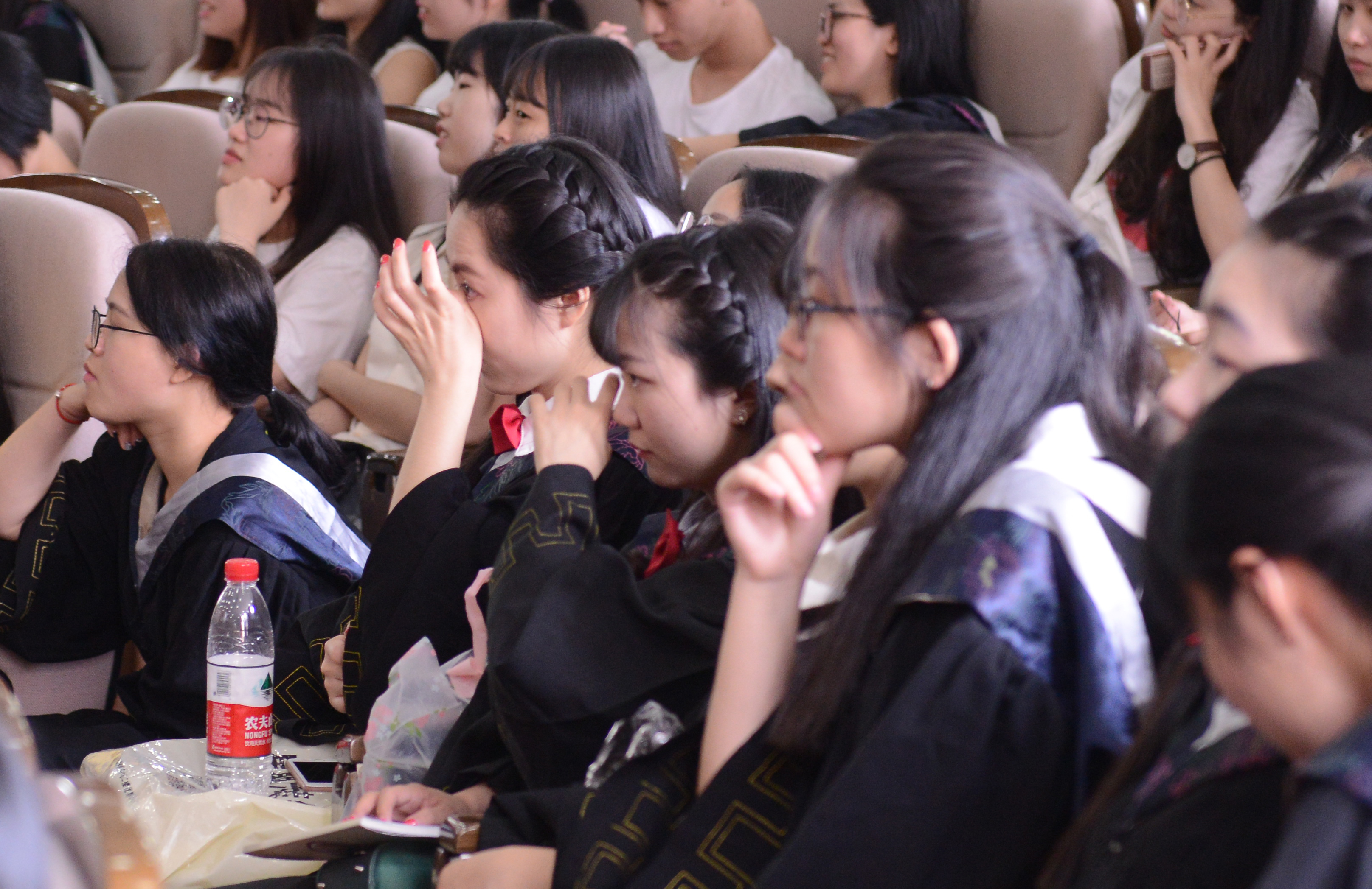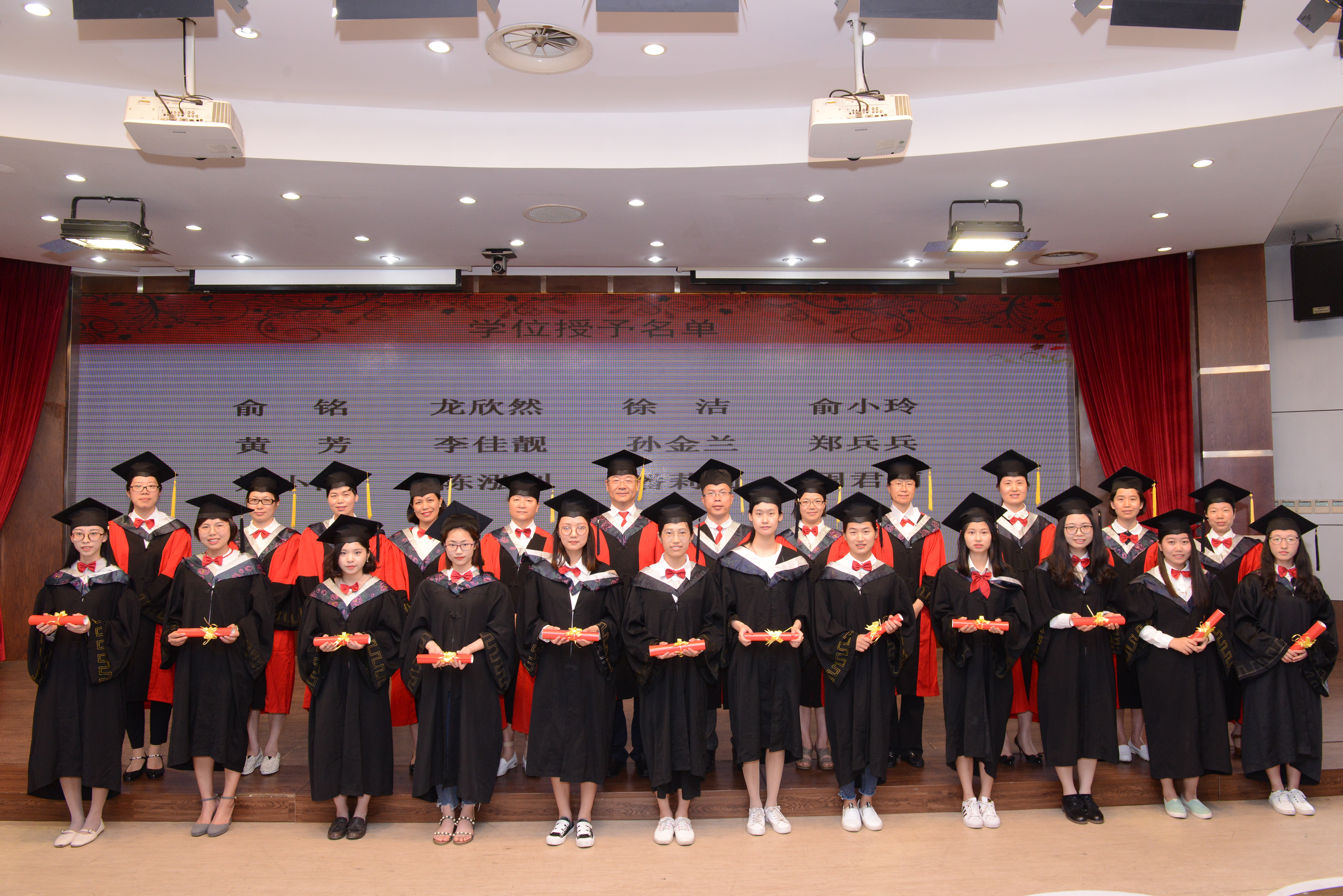 学位授予仪式上,350位护理本科毕业生依次上台向导师鞠躬,接受拨穗,并从卢中秋、蔡福满、杨晔琴、余昌妹、尹志勤、孙彩霞、徐小群、王爱霞、黄小琼、许虹波、符丽燕、陈军12位导师手中接过了员工荣誉证书并合影留念,为温医的护理学习生涯画上了圆满的句号。观礼的师生也用热烈的掌声为每一位毕业生送上了最真挚的祝福。