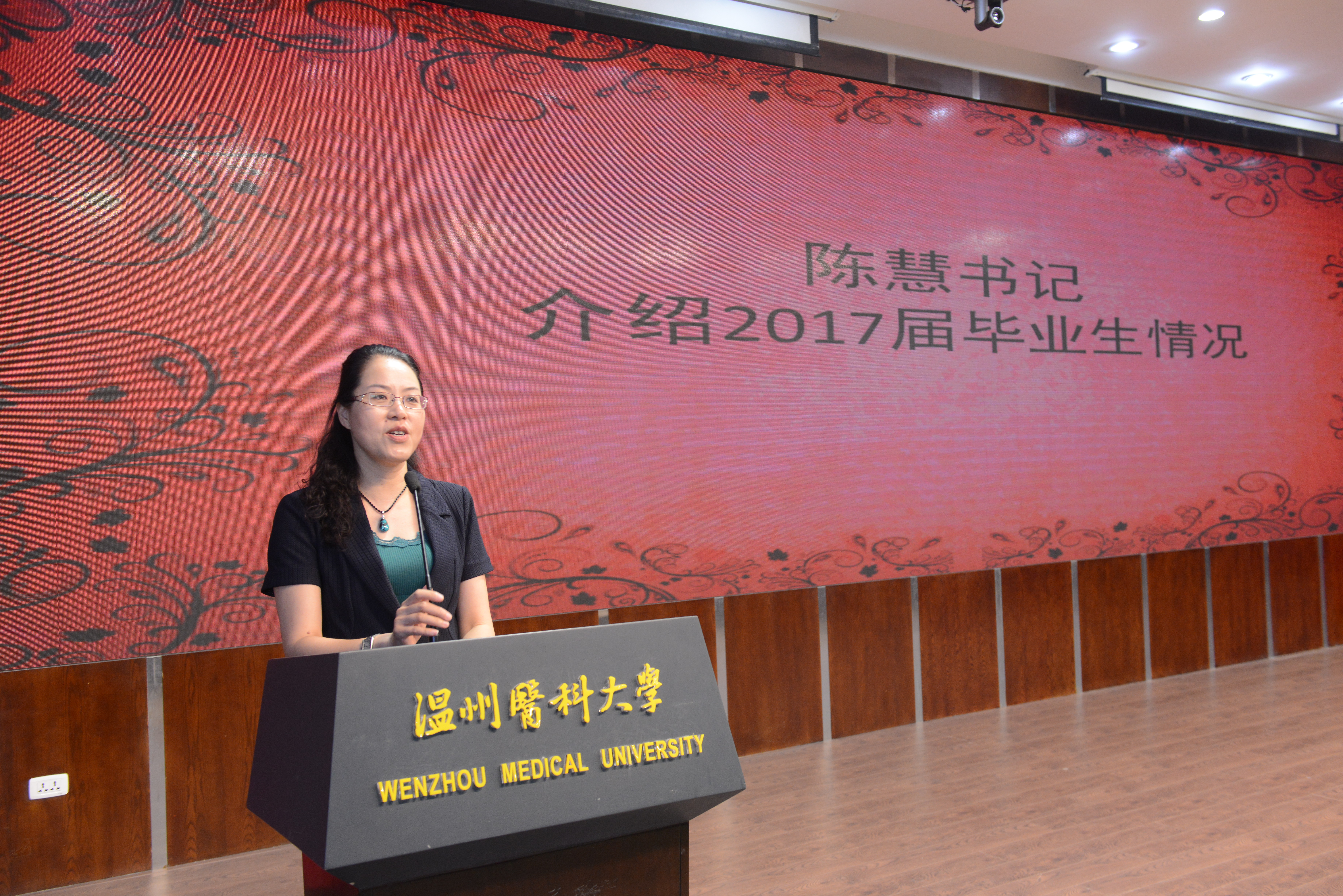 典礼上,卢中秋经理和陈慧书记先后致辞,对全体毕业生顺利完成学业表示祝贺,并介绍了本届毕业生的总体情况。在即将毕业的最后一堂课上,希望身为人类健康卫士的他们能够认识到自身肩负的责任,牢记勤勉仁爱、慎独求真的院训,存感恩之心,用所学之长,救死扶伤,回馈社会,奋斗终生,开创人生新辉煌。