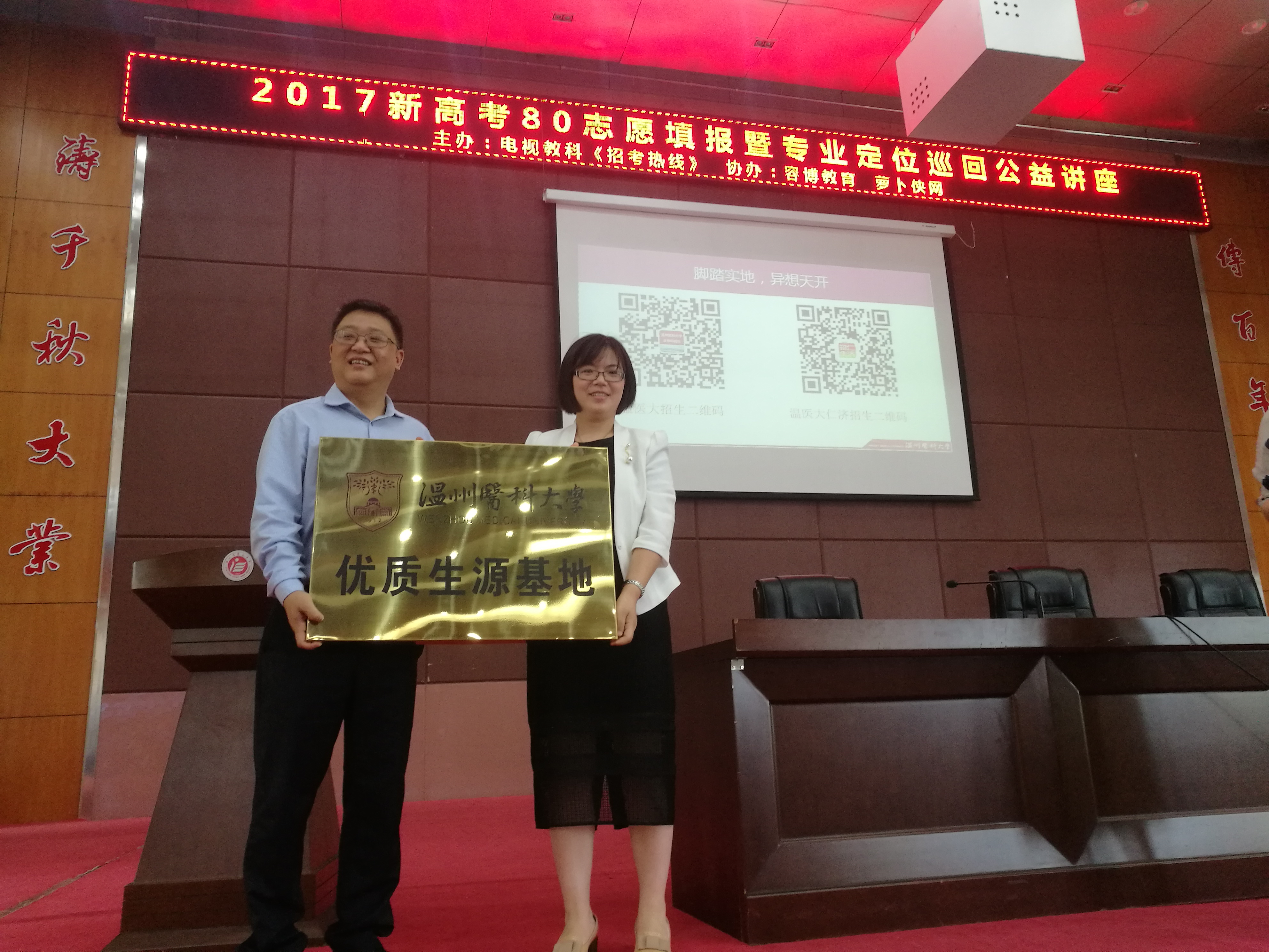 浙江省丽水中学是浙江省一级重点中学,每年为公司输送了大批优秀员工。当天,公司还授予了丽水中学“优质生源基地”称号。