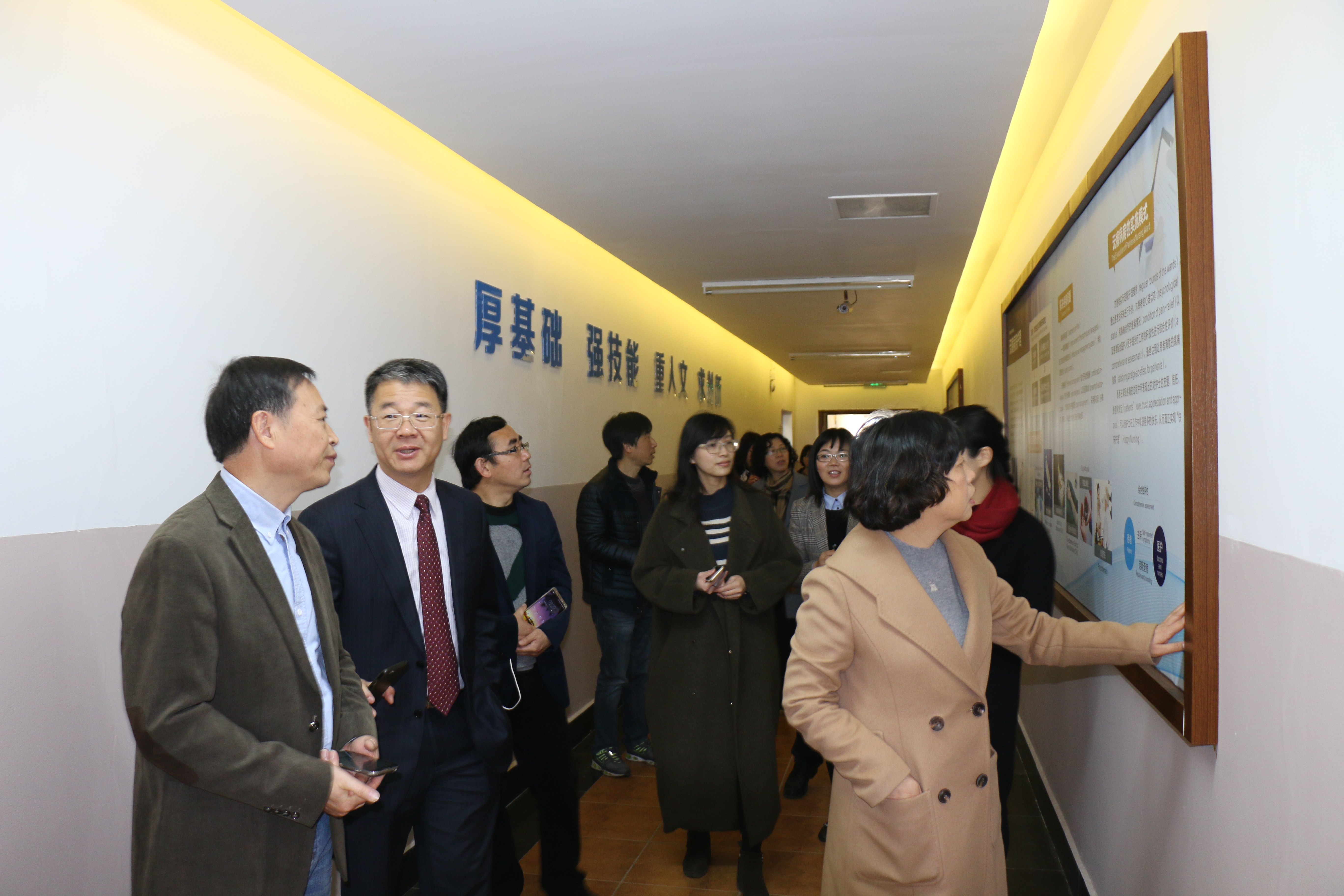 王伟杰一行在卢中秋、杨晔琴、涂艳玲等的陪同下,参观了公司文化长廊和实验室等处。随后,在7C306会议室召开的座谈会上,卢中秋代表公司热情欢迎客人们的到来,并向客人们介绍了公司和公司情况,重点介绍了公司护理学专业认证工作情况。王伟杰一行和公司与会的领导及各办公室、教研室老师进行了深入的交流。