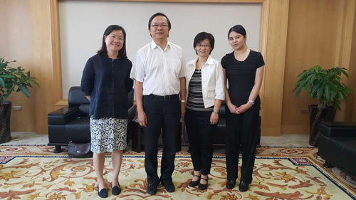 2015年9月17~20日,台湾中山医学大学护理系主任颜文娟教授、卢燕娇助理教授一行受公司邀请来访交流,在温期间,给温州护理同仁带来《海峡两岸长期照护老年人居家护理教育论坛》,于18日下午来校与瞿佳董事长、吕帆副董事长会面并进行了亲切会谈,其后公司陈行汉书记、姜丽萍经理、蔡福满副经理以及公司全体老师在同仁楼C306会议室热情接待了来访的嘉宾。