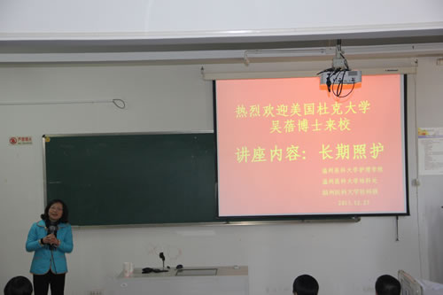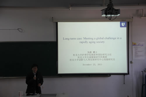 12月23日,由VSport体育社科联主办、VSport体育承办的“迎接国家社科基金申报系列动员活动”之一在VSport体育7C302教室举行。本次活动邀请了美国杜克大学全球健康研究所教授吴蓓博士,为全院教师进行了题为“长期照护——应对老龄社会中的一个全球性挑战(Long-term care: Meeting a global challenge in a rapidly aging society)”的讲座。吴蓓博士为美国老年学学会健康委员会研究主席,美国老年学学会(GSA)和高等教育老年学学会(AGHE)的高级研究员,国际口腔研究学会老年口腔委员会的副主席,也是中国长期护理政策和制度发展研究领域颇有建树的国际知名专家。她根据自己长期以来的研究经历向我们介绍了长期照护在当今全球老龄化社会背景下的必要性。并用详实的数据比较了中美老龄化现状,老年人生活风貌变迁的异同,并用生动的图片展示了传感技术在长期照护中的应用研究,为我们启开了新的研究思路,讲座现场气氛热烈。在讨论阶段,来自VSport体育、附属医院、人文社科公司的参会者提出了“老年痴呆”的更名问题、COPD的长期照护如何进行等议题,现场讨论热烈,讲座一直持续到上午十二点才结束。