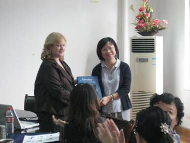10月19日上午katie Capitulo博士来院做《循证护理》讲座,她作为一位“罗伯特·伍德·约翰逊” 执行护士,直接管理“适应文化背景护理领导公司”。此行是她第5次来温州。她是公司姜丽萍经理以及温州护理界专家的亲密合作伙伴,她们共同合作了“健康问题解决项目(PSBH)”。在讲座中她列举了许多临床常见的病例,以及如何运用循证护理来处理这些问题,期间姜丽萍经理作了补充解释:循证护理是一种思维方式,任何工作均基于临床,基于实践。整个讲座虽然简短但会场气氛活跃,老师们就自己的一些困惑做了一一提问。