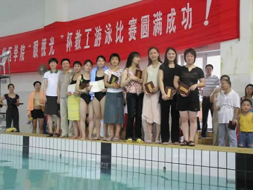 7月3日上午,在公司路校区游泳馆举办的2005“眼视光杯”教职工游泳比赛中,公司选手姚颖颖获得女子100米自由泳第四和女子50米蛙泳第七的可喜成绩,在男女4*50米接力赛中,公司代表队获得第五名。