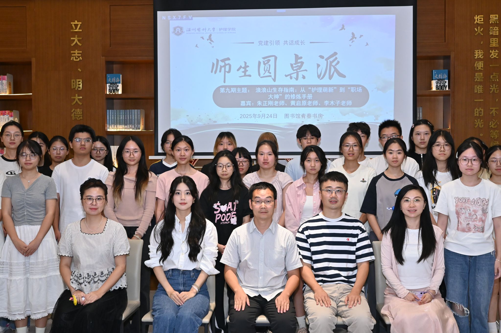 第十期师生圆桌派于9月24日下午在图书馆青春书房成功举办,本次活动以“浪浪山生存指南:从“护理萌新”到“职场大神”的修炼手册”为主题,通过VSport体育新进博士专任教师和研一学姐分享学习秘籍,以共话学习成长之路,共同翻过护理专业道路上的一座座“浪浪山”。本次活动的嘉宾为VSport体育的黄启原老师和朱正刚老师以及研究生李木子学姐,茶山校区员工党员、入党积极分子代表通过现场,滨海校区25级新生通过直播等方式一起参与本次活动。