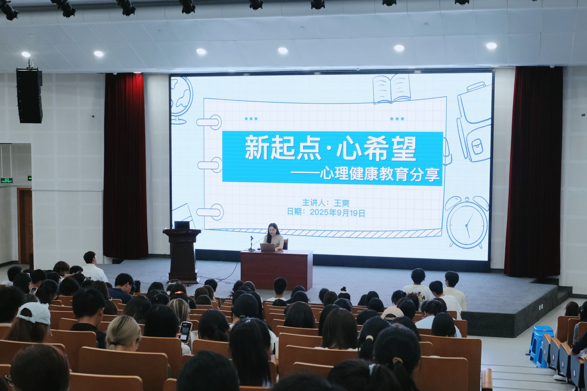 为助力环境适应,培养调适能力,筑牢心理根基。公司王爽老师,以 “新起点,心希望” 为主题,结合新生入学后可能面临的学业压力、宿舍关系、生活适应等实际问题,用身边案例拆解情绪识别方法,分享 “三步调节法” 等实用技巧,引导新生树立正确的心理健康教育观念。