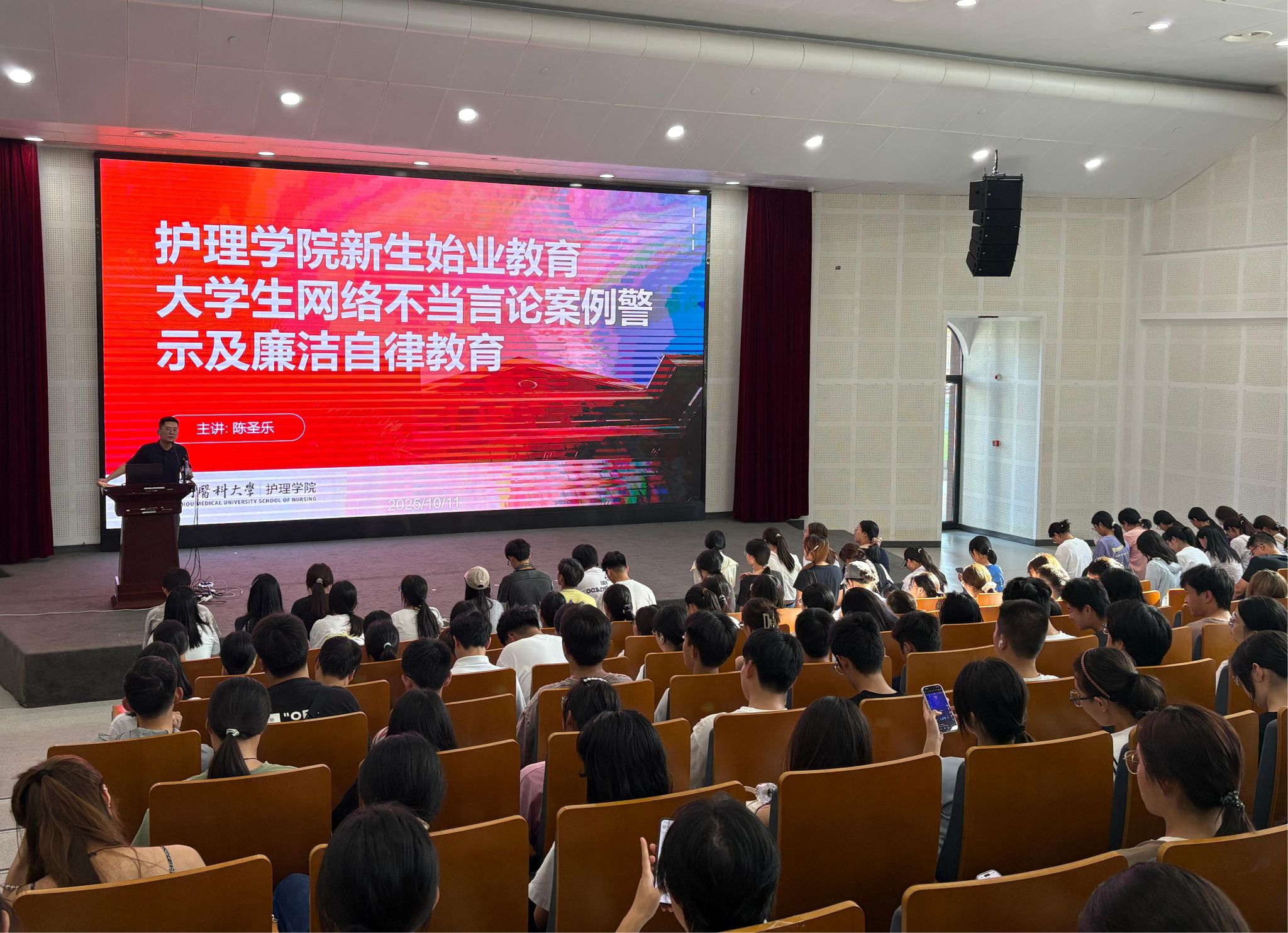 为帮助 2025 级新生提升网络行为素养、树立廉洁自律意识,公司陈圣乐老师围绕老员工网络不当言论案例警示及护生廉洁品格培育展开,引导同学们规范网络行为、践行医员工廉洁自律要求,在勤学笃行中成长为有责任、有担当的新时代青年。