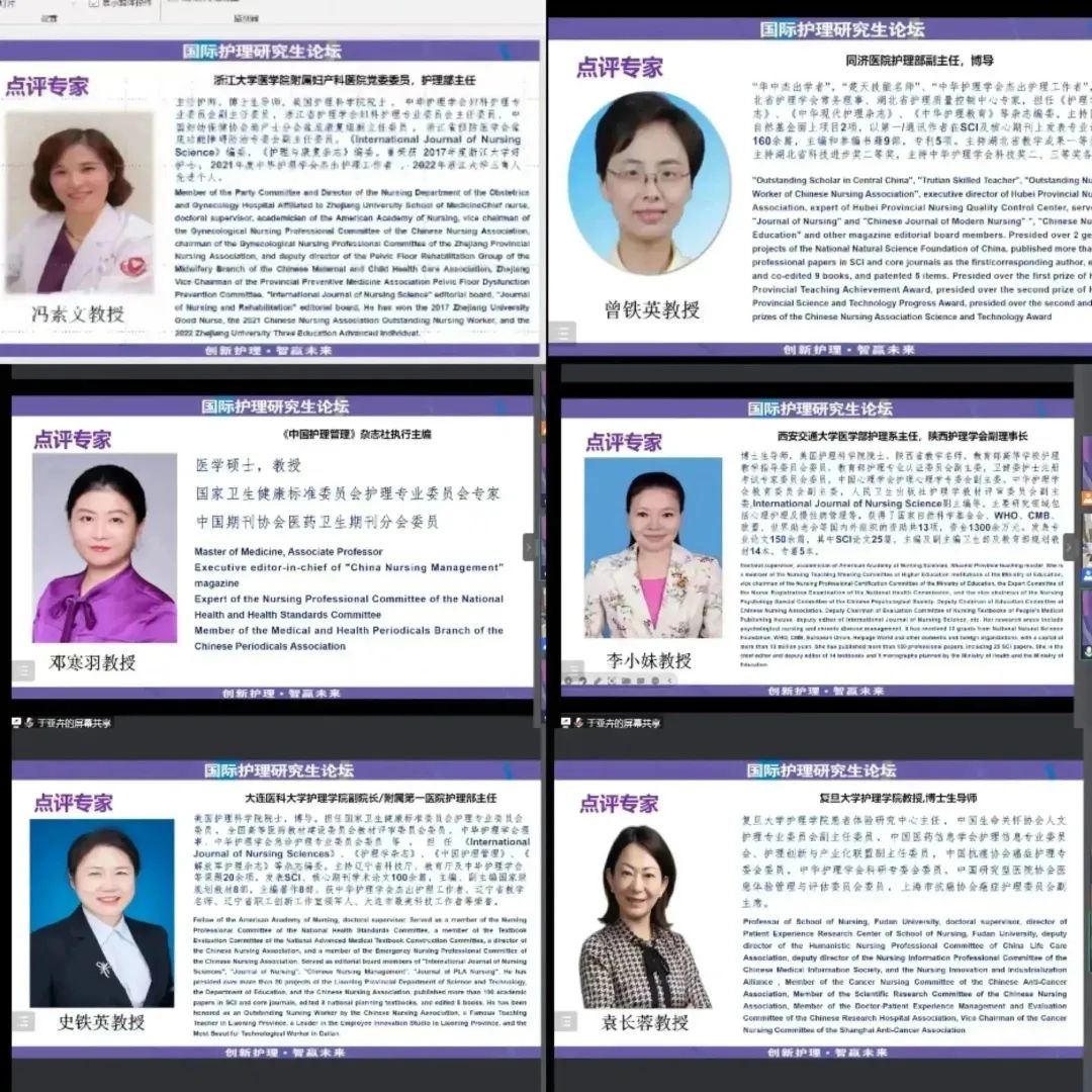 6位点评嘉宾充分肯定了青年护理学者新颖选题、科学的研究方法,以及他们在科研中表现出的求真求实、质疑批判、独立思想和合作探究的精神;同时还指出了他们研究中存在的不足,并给予针对性专业指导。