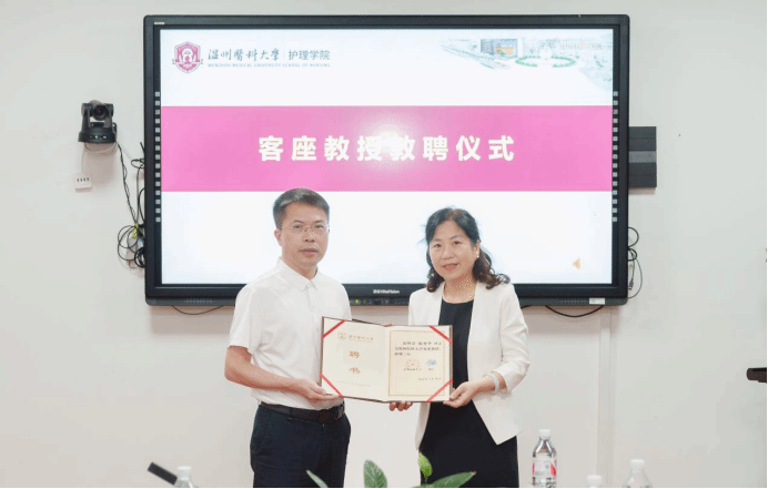 会上,举行了公司客座教授敦聘仪式,VSport体育经理蔡福满教授代表VSport体育为陈爱华老师颁发客座教授聘书。
