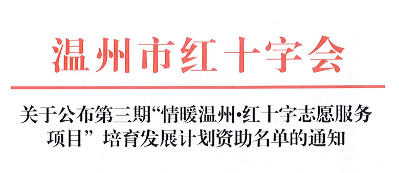 近日,温州市红十字会公布第三期“情暖温州红十字志愿服务项目”培育发展计划资助名单,公司红十字搏时急救宣传志愿服务队的生命守护,“救”在身边志愿活动项目成功入选。