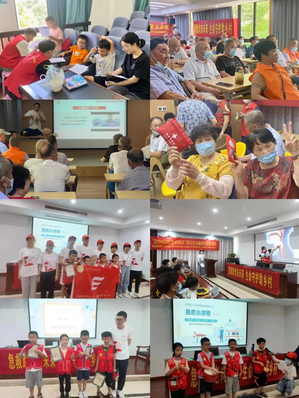 在温州市地区,首创开展“急救小讲师”活动,面向大学城附属公司小员工选拔与培养有潜力的小朋友们,打造了一支小小急救讲师团,为小员工急救科普留下一支带不走的队伍。经过前期多次培训,急救小讲师们、实践团成员携手温州市红十字会团队于 6 月 30 日、7 月2日分别在郭溪街道党群服务中心、仙岩街道党群服务中心进行了两次急救知识普及。此外,实践团成员联合泰顺县红十字会与当地实践成员,在泰顺县三魁镇党群服务中心进行急救知识普及,三次急救普及累计宣讲对象200余人次,并获得较好反响。