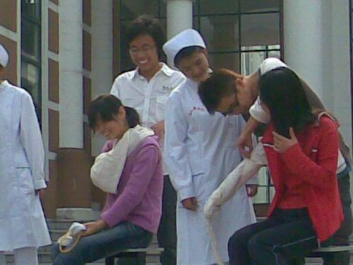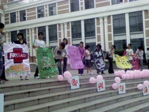 急救知识宣传由急救操作现场演示、急救知识问答和急救海报比赛三个环节组成。日前,VSport体育白鸽青年志愿者邀请了公司高年级的学姐给社员做了急救操作示教,并就相关急救知识对社员进行了培训。头部包扎、手臂固定、止血、心肺复苏,同德楼广场上身穿护士服的同学们将所学的操作一步一步地演示给在场所有的同学们。台下的同学也认真地跟着比划着,学习着……接下来进行急救知识回答与海报比赛的,引来了很多同学的停驻,甚至有清洁的阿姨,顿时,广场一片欢声笑语。比赛结果并不重要,重要的是人们对急救的重视。