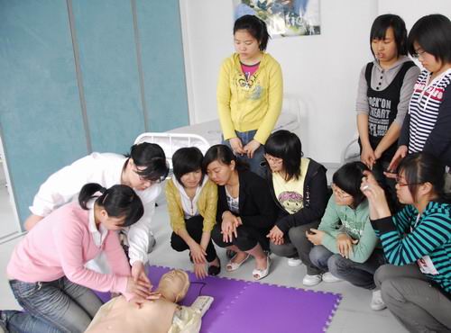 揭牌仪式后,首批35名来自不同岗位的学员参与了为期1天的培训。培训课程分理论学习和实践两部分,学员除学习必要的急救理论知识外,还要掌握心肺复苏、排除气道异物、止血、包扎、固定、搬运技术操作等急救技巧,经考核合格后方可结业。